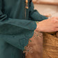 Cotton chikkankari shirt traditional embroidery featuring with organza applique work on the boarders with delicate diamantes and crystals,intricate fabric flowers gracefully lining the borders