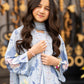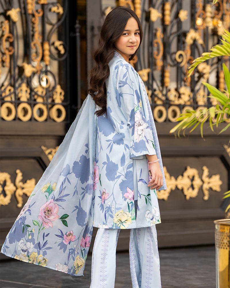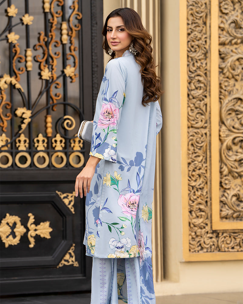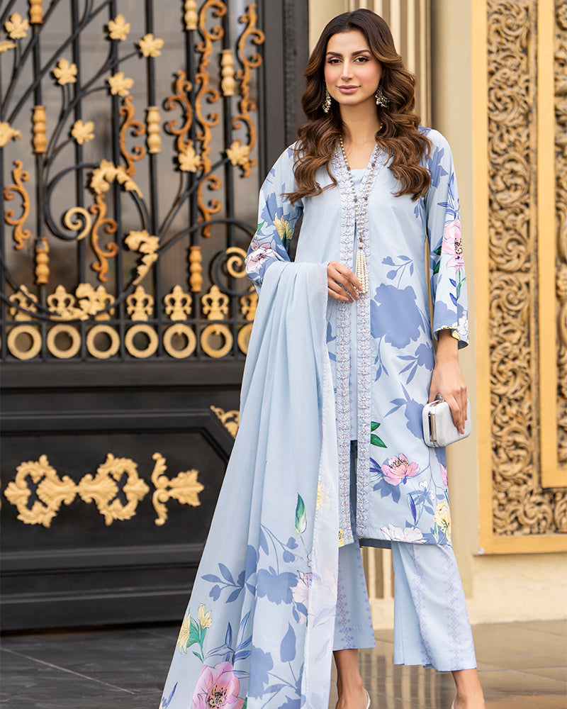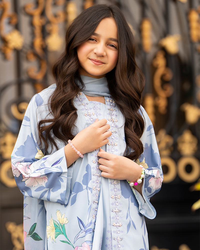 Grip silk digital printed open gown that has been expertly crafted with intricate naqshi and stone work