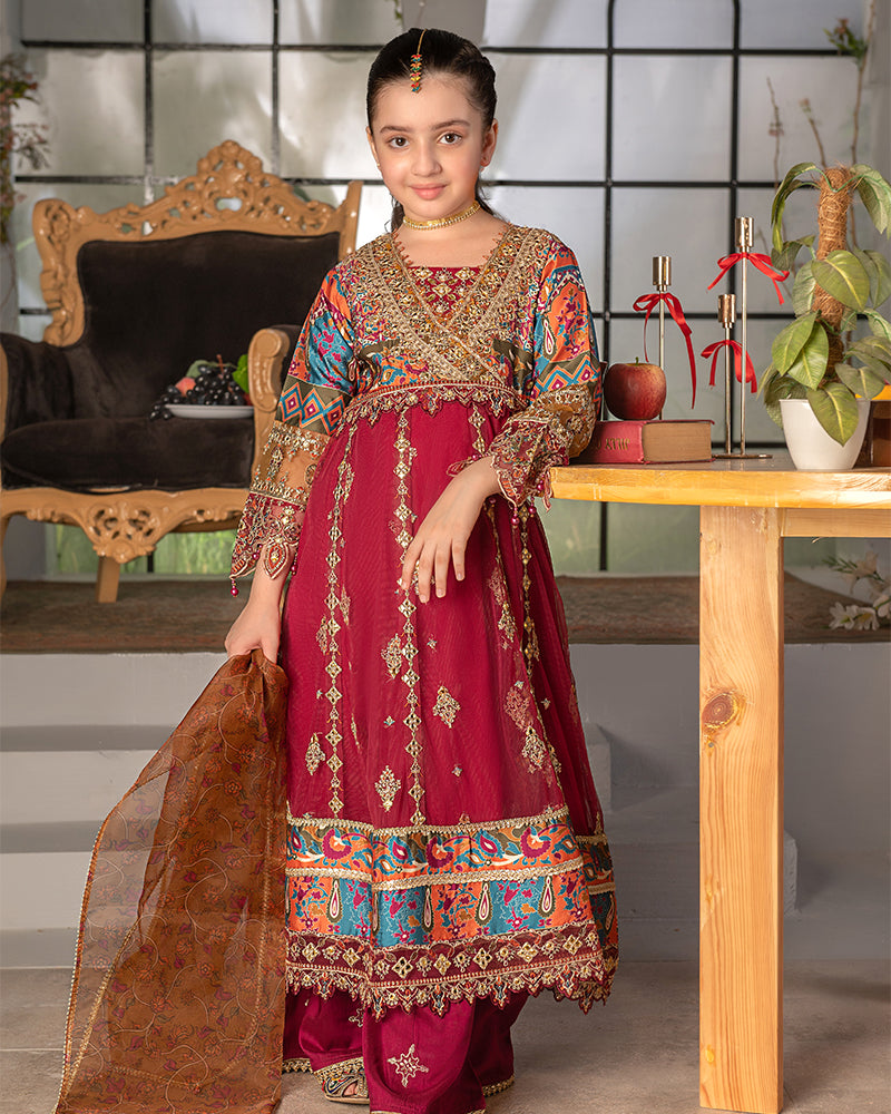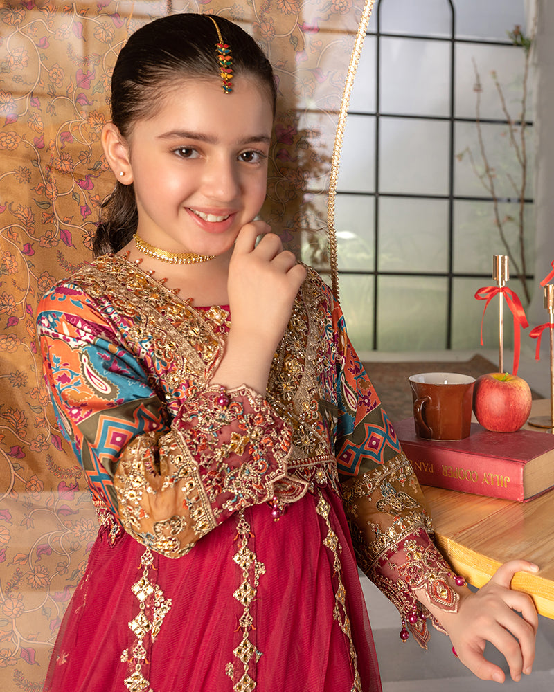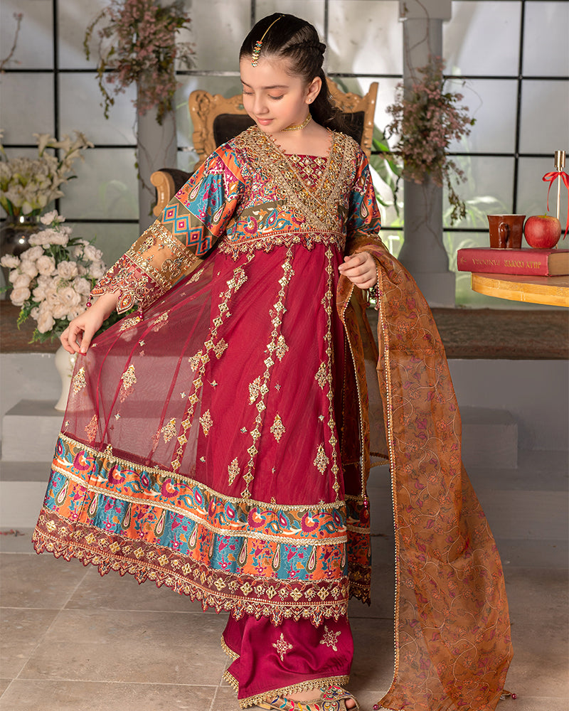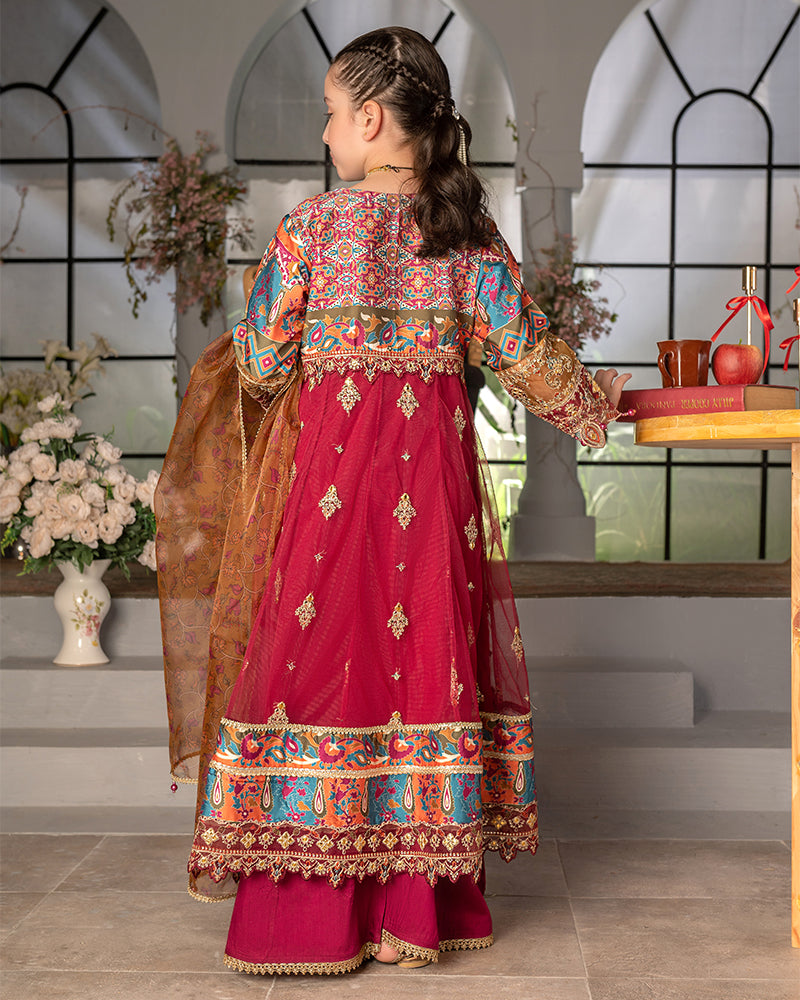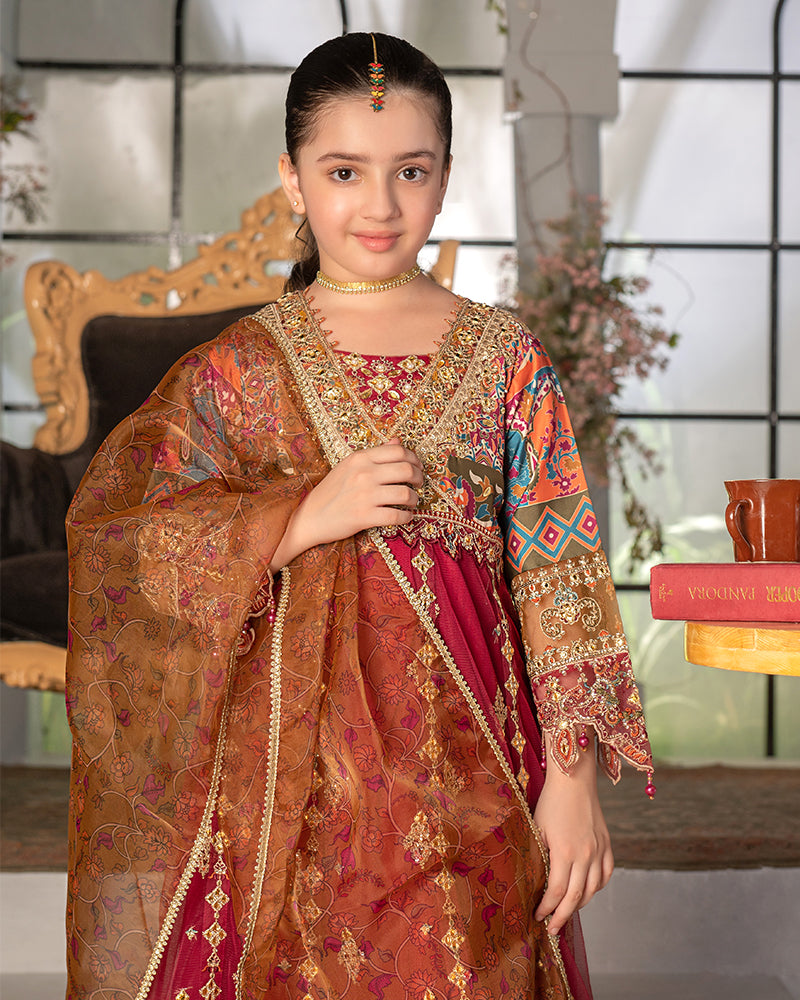 Dupatta:  Organza digital printed dupatta, embellished with delicate laces and pearls