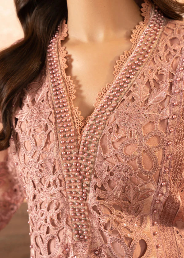 Additional Description: 1-Elevate your style with our exquisite Organza Sequin Embroidered Shirt featuring 3D floral appliques and velvet detailing on the shirt bottom, adorned with delicate pearl embellishments. 2-Complete your look with the matching Organza Embroidered Screen Printed Dupatta, accented with pearls and border laces for a touch of elegance 3- Pair it with our Viscose Trouser featuring intricate lace detailing