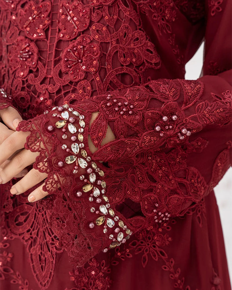 Additional Description: "1-exquisite chiffon chikankari shirt, Adorned with intricate cutdana sequins and crystal embroidery hand adda work on the sleeves and delicate 3D floral flower embellishment 2-Stunning shirt is our chiffon embroidered dupatta, featuring an elegant scalp design 3-Paired perfectly with soft viscose trouser"