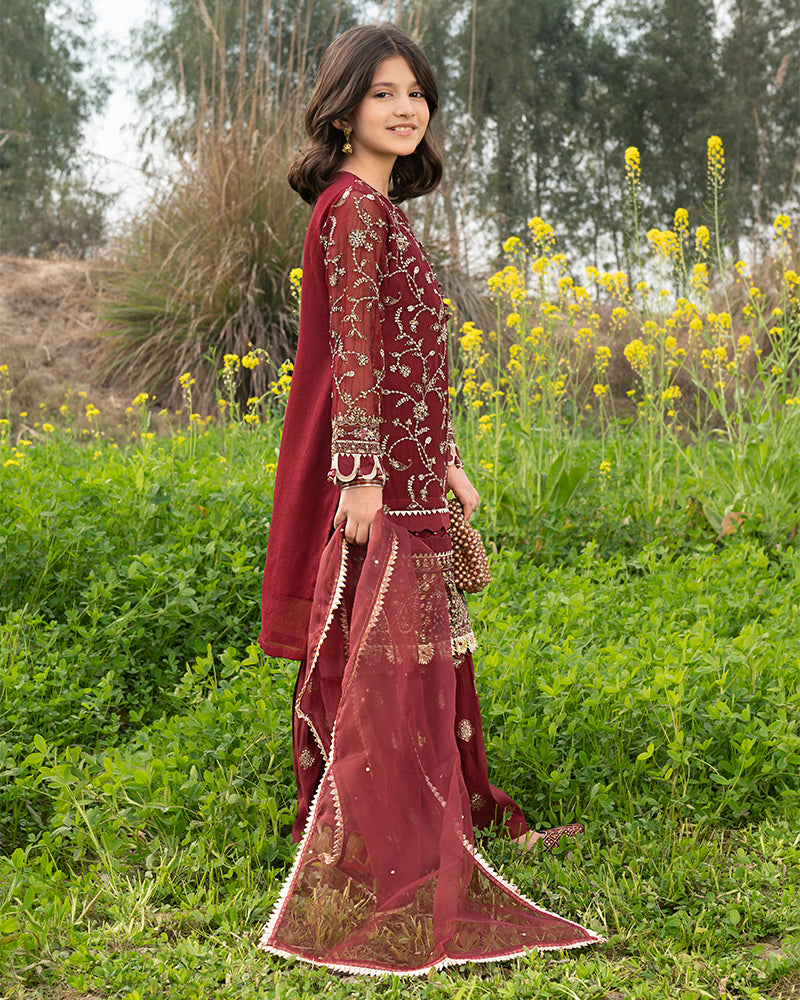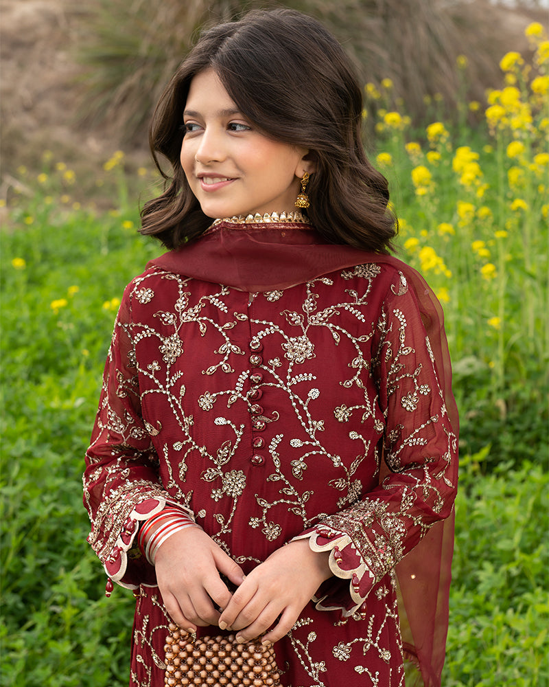Dupatta: Organza dupatta adorned with shimmering diamantes and elegant lace