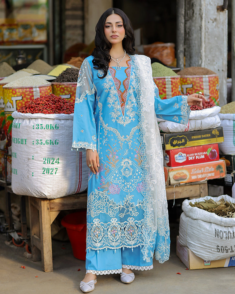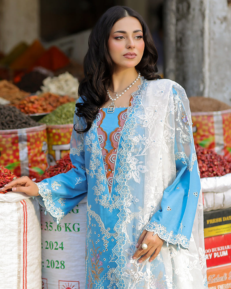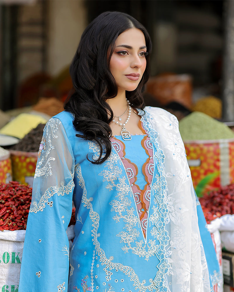 Organza Burnout embroidered dupatta features intricate cutwork borders and pearls embellishments