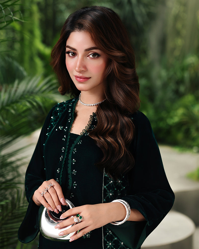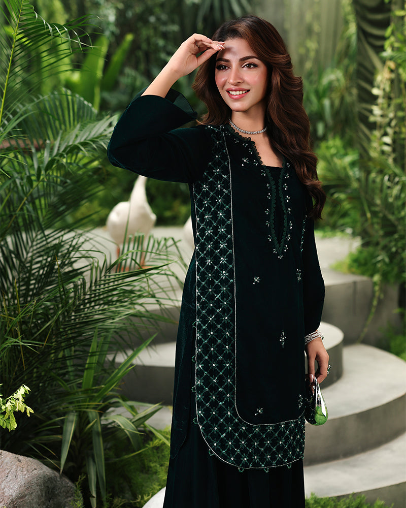 Velvet panel shararah embodies sophistication and artistry at its finest.