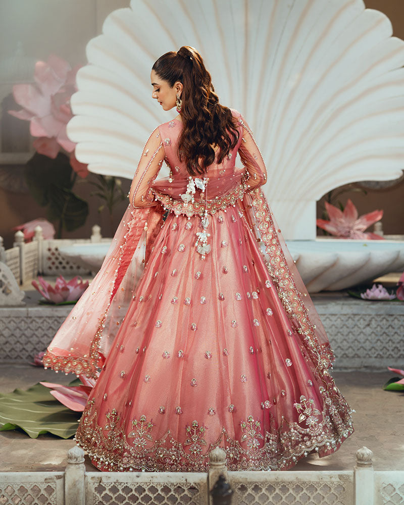 Additional Description: 1-In alluring pink, our signature 'ZORA' Maxi is an embodiment of femininity and achieves a glistening dewy look with expert embroidery work with an exquisite composition of 3d floral chain work, pearl, sequins, and saroski work turning you into an ethereal beauty. 2-Embroidered shimmer lehenga adorned with sequins, lustrous pearls, and intricate sitara details, giving a masmerizing look. 3- This net embroidered dupatta dazzles with intricate adda work, adorned with shimmering sequins, lustrous pearls, and delightful sitara that wh