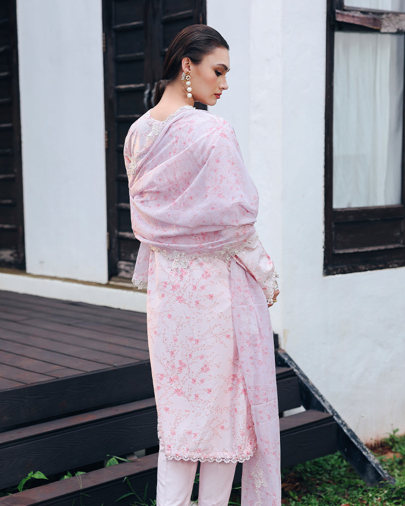 Chiffon dupatta, veiled in intricate embroidery cutwork and hidden pearls