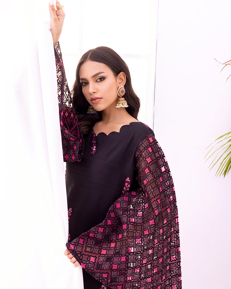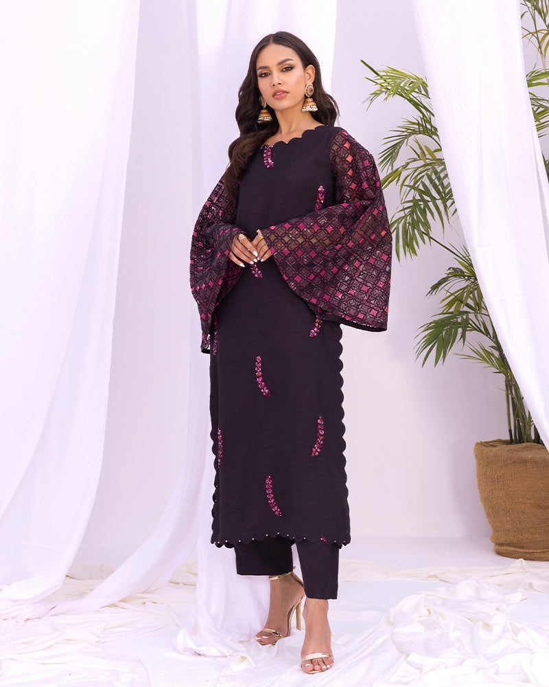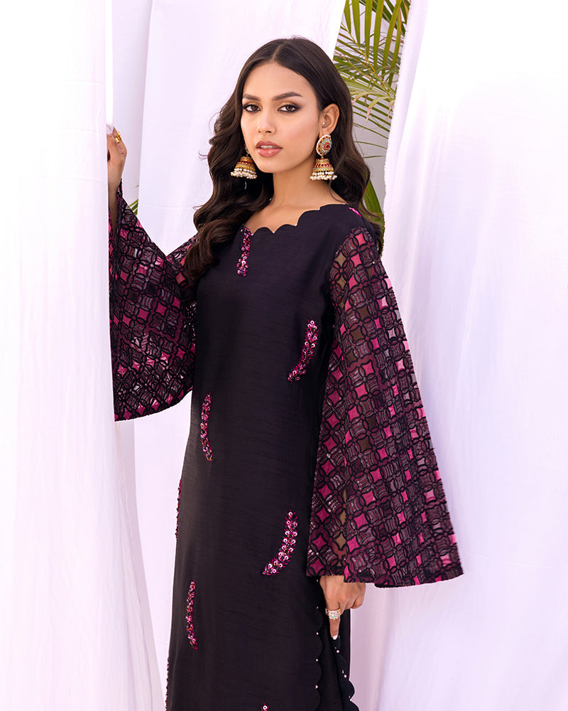 Shirt: Korean raw silk shirt, beautifully enhanced with intricate hand embellishments