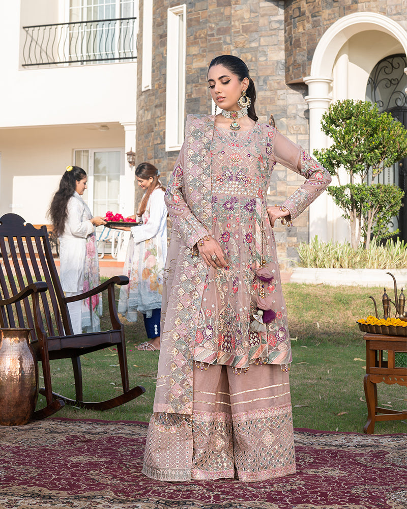 Trousers: Completing this ensemble is a pair of self-organza embroidered shararah