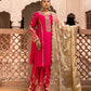 Shirt: This raw silk embroidered shirt is adorned with handcrafted adda and mirror work, as well as beautiful tassels on the shirt border and sleeves