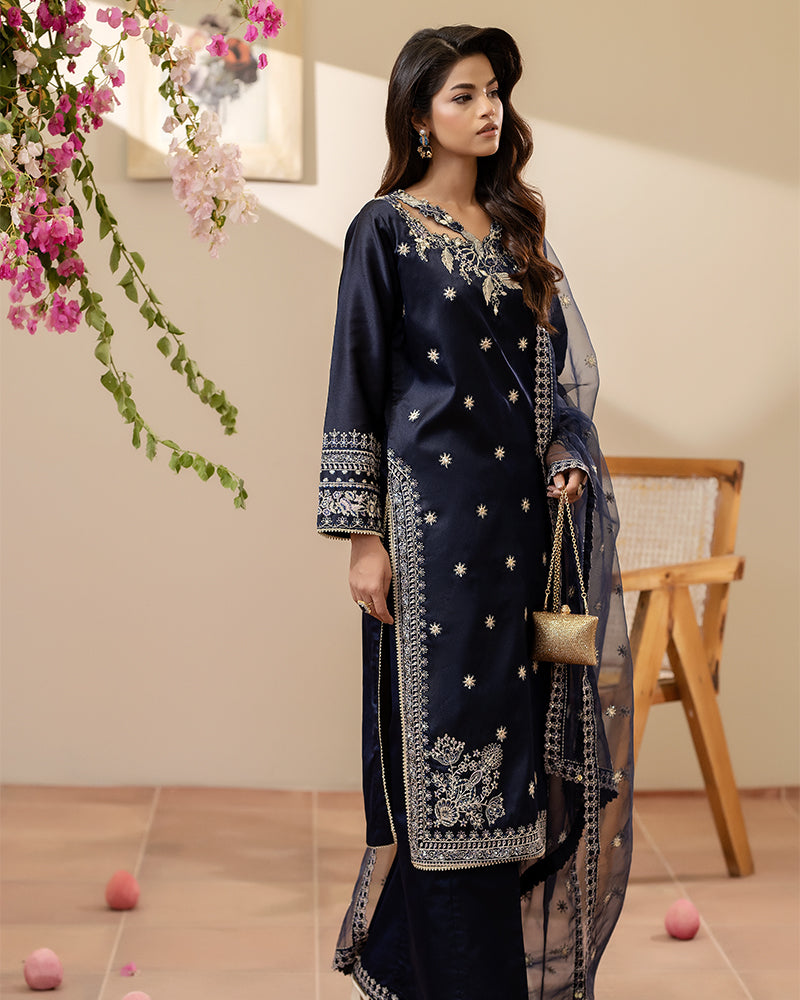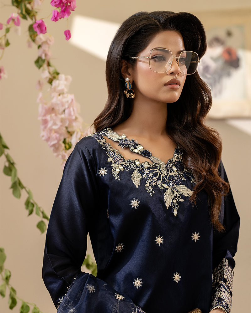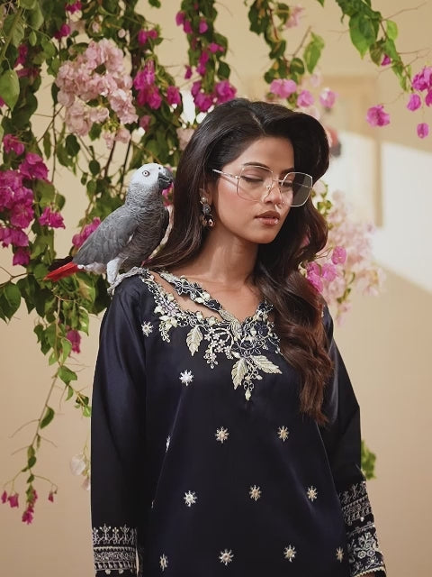 Silk trousers beautifully crafted with shimmering spangle embroidery