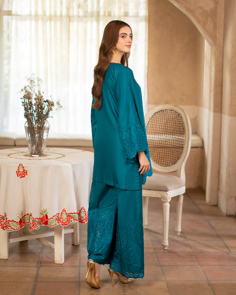 Blended raw silk Chikankari co-ord set – a perfect fusion of tradition and comfort! Intricately embroidered to captivate the senses, with a soft and breathable fabric that feels as good as it looks.