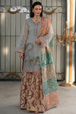 Shirt: Net shirt comes with stonework along the neckline and on it’s sheer sleeves.